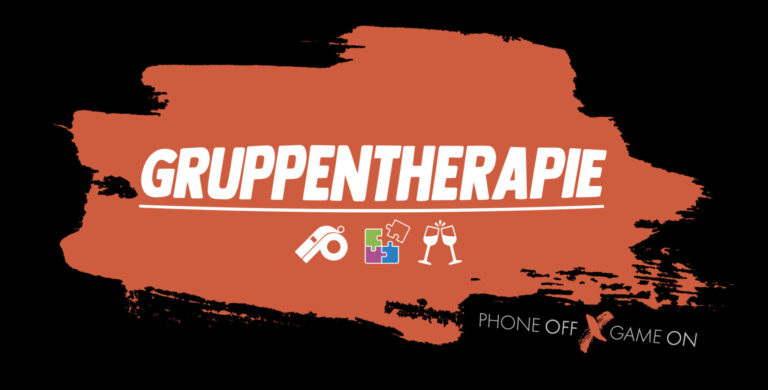 Die GRUPPENTHERAPIE ist ein interaktives, sich stets weiterentwickelndes Spielkonzept, das eine unterhaltsame Abwechslung zu unserer digitalisierten Umwelt darstellt. Im Rahmen einer GRUPPENTHERAPIE treten 2 bis 4 Teams in bis zu 10 analogen Disziplinen gegeneinander an, die sich aus innovativen, klassischen sowie nostalgischen Spielen zusammensetzen.